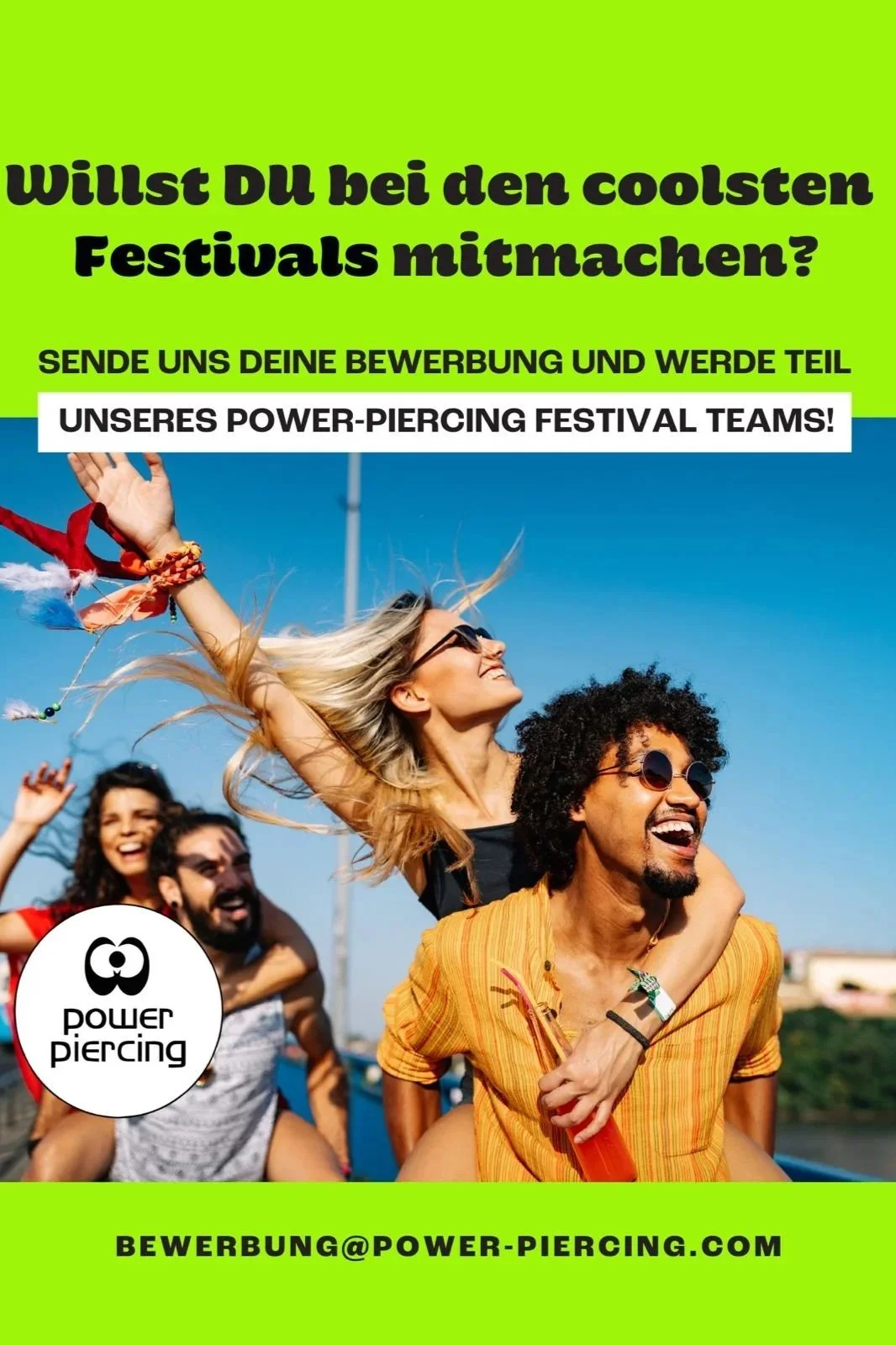 Du liebst die Festival-Atmosphäre, bist kontaktfreudig und hast Bock auf einen Job, der sich nicht nach Arbeit anfühlt? Dann komm ins Team von Power Piercing!